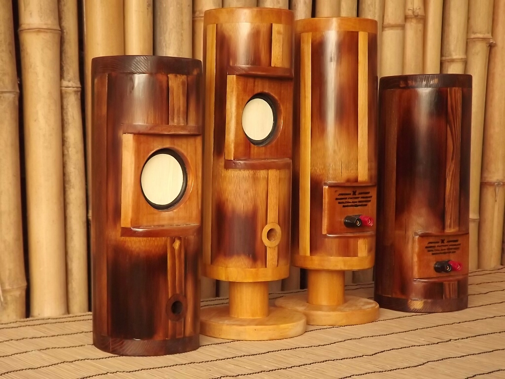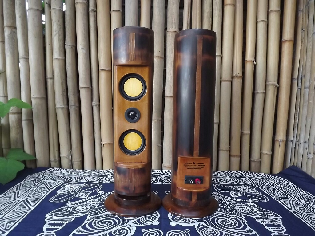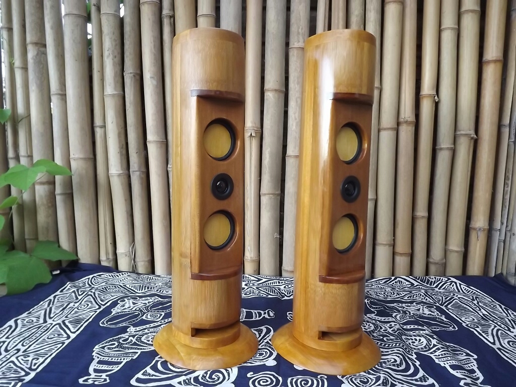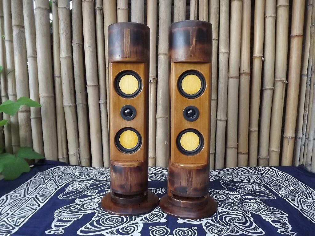竹の振動板のフラットスピーカーをダブルで搭載した2Way のバンブースピーカーです。低音から高音までバランスよく