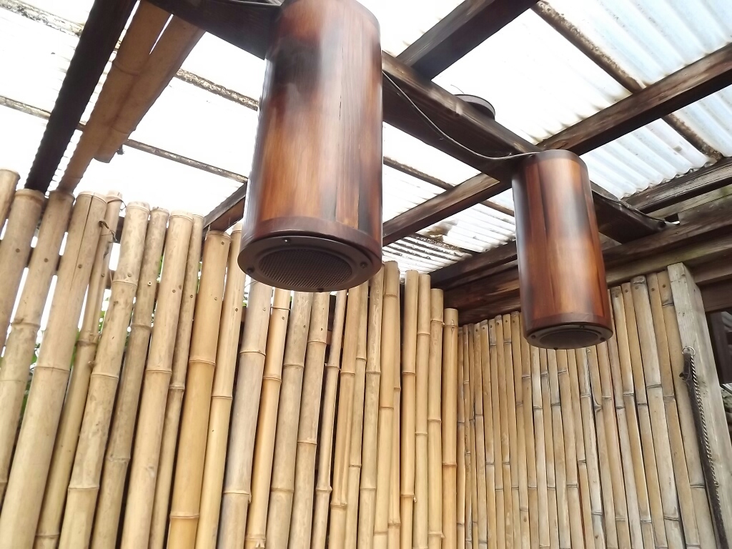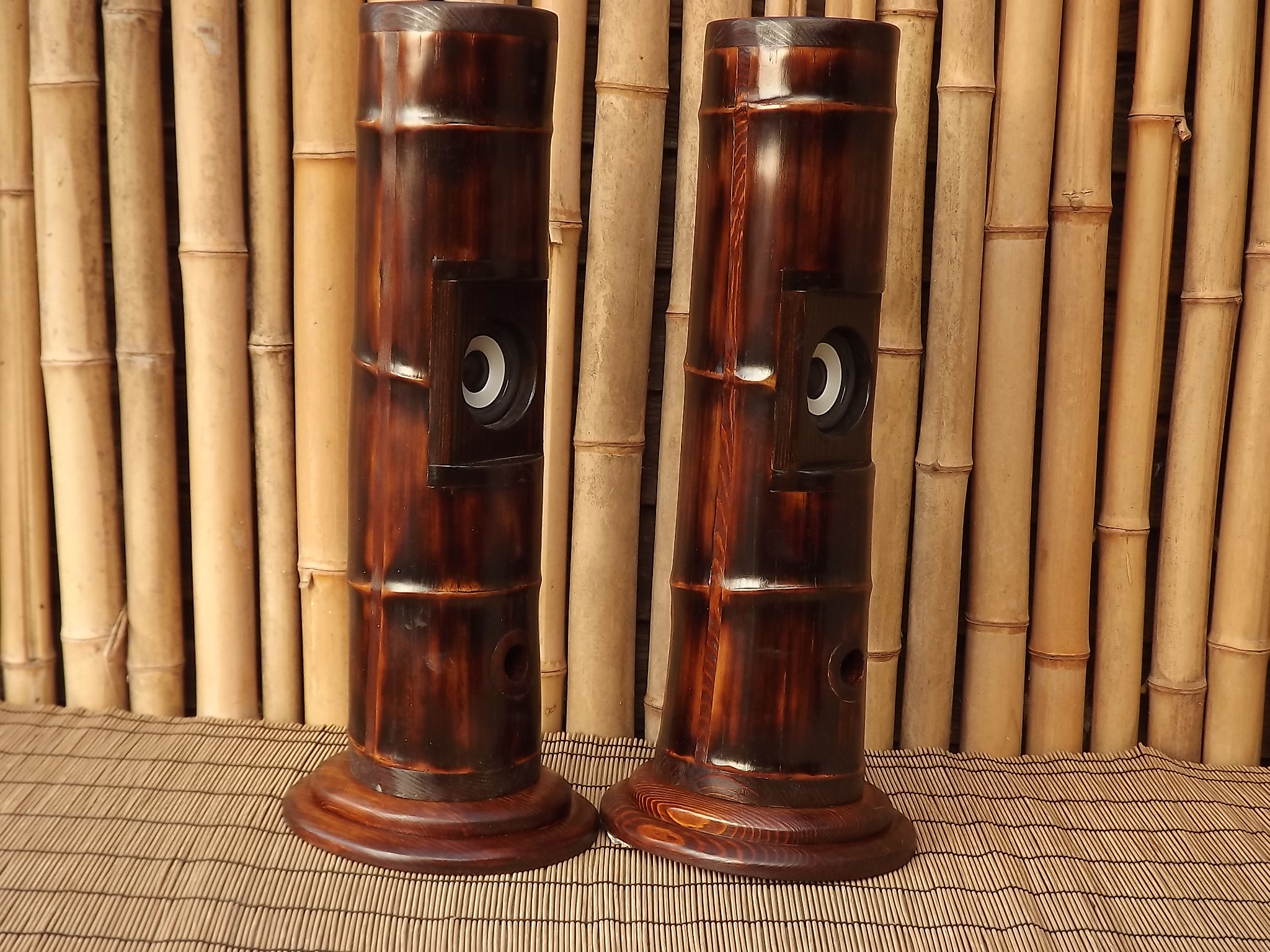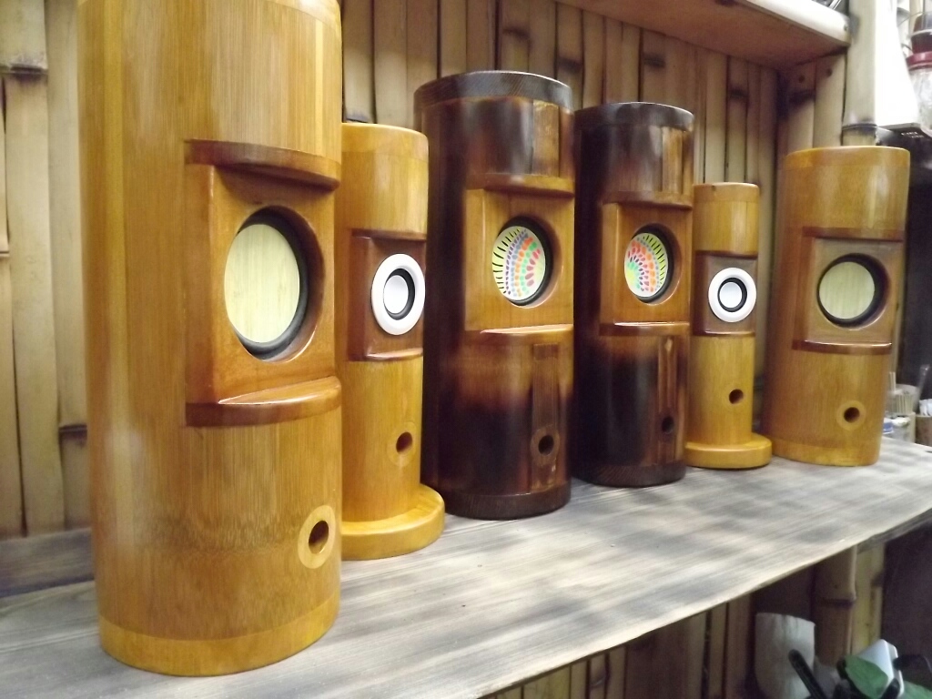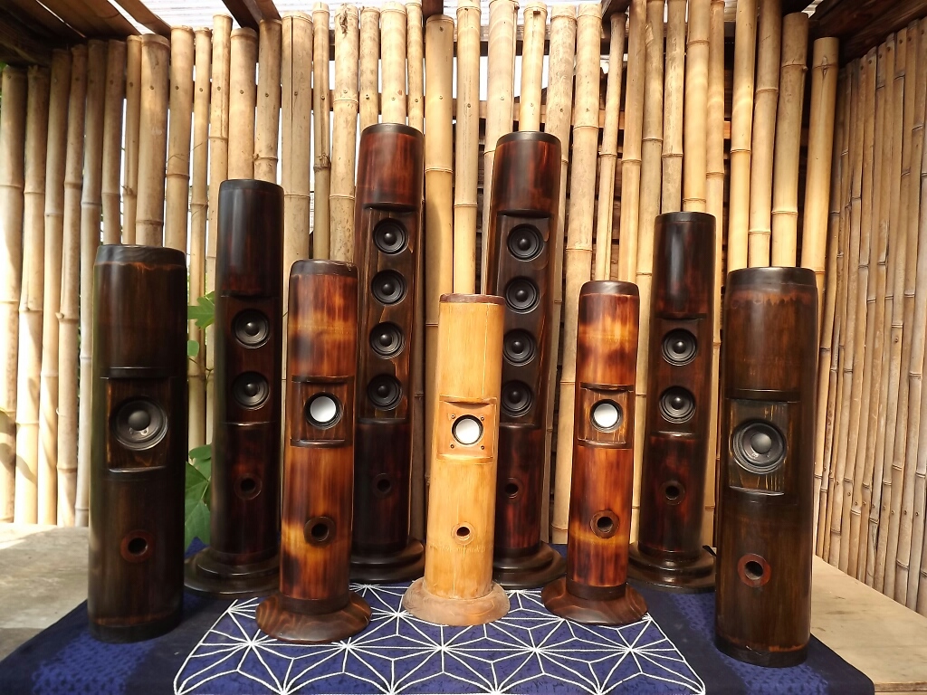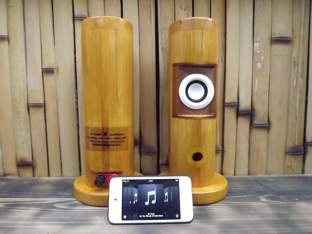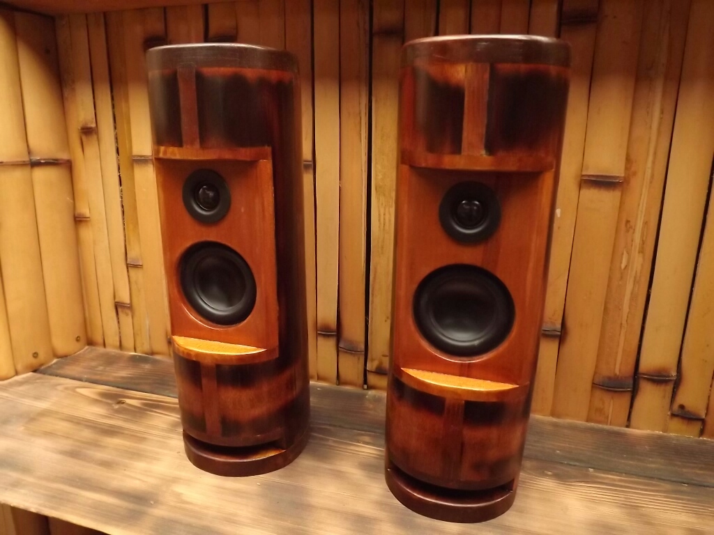竹の根元をうまく使ったバンブースピーカーです。肉厚の竹から出る重低音はなかなかいいです。