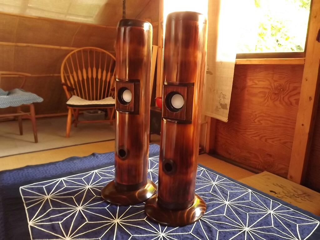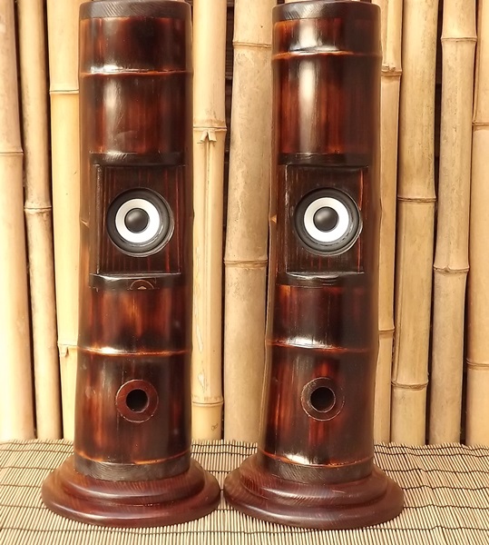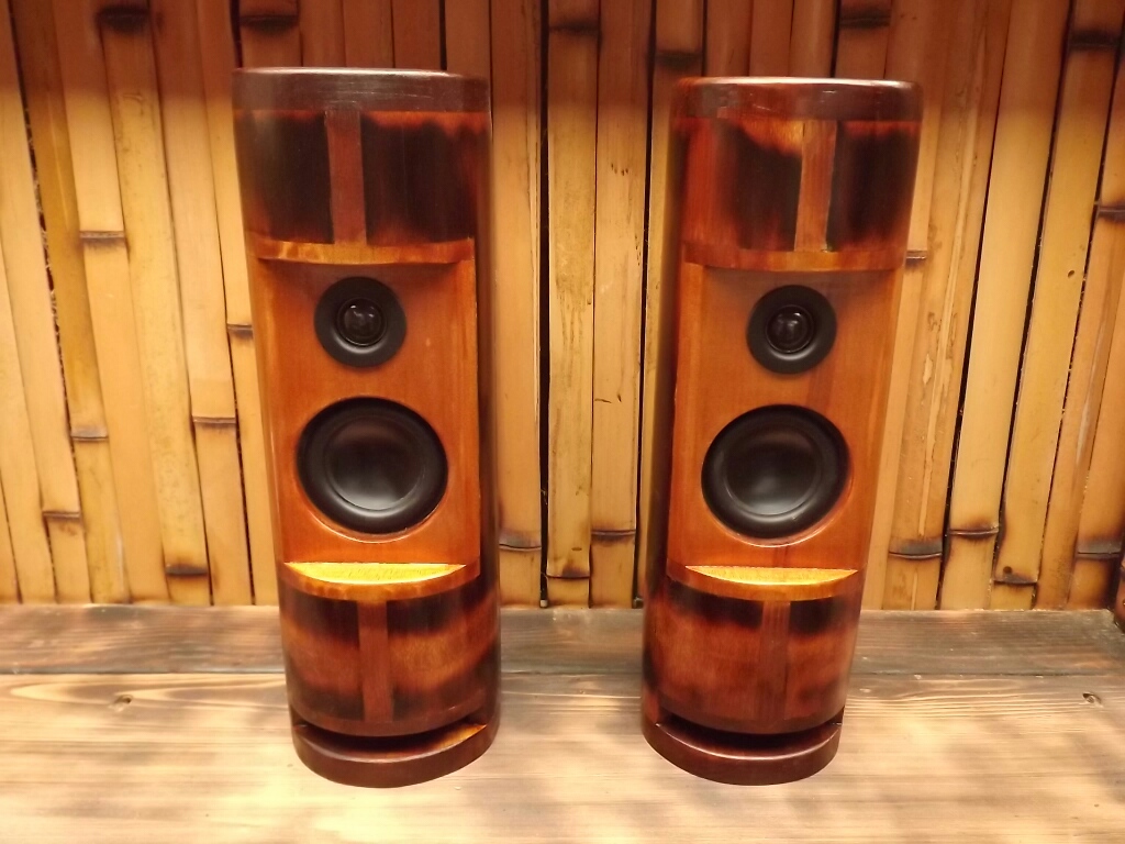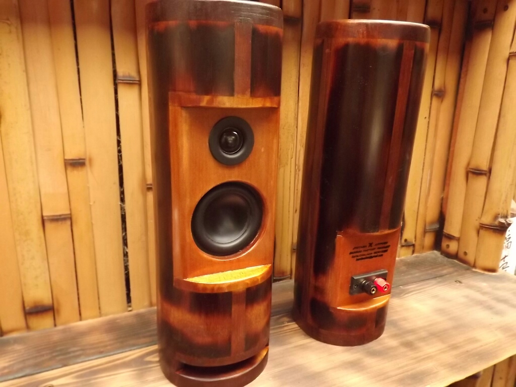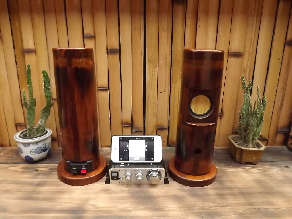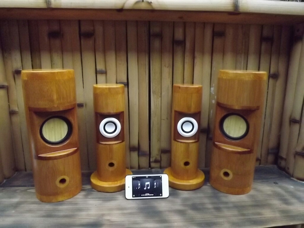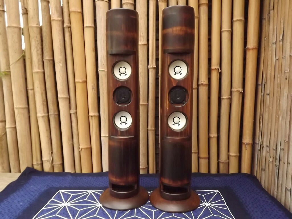 竹の根元をうまく使ったバンブースピーカーです。肉厚の竹から出る重低音はなかなかいいです。