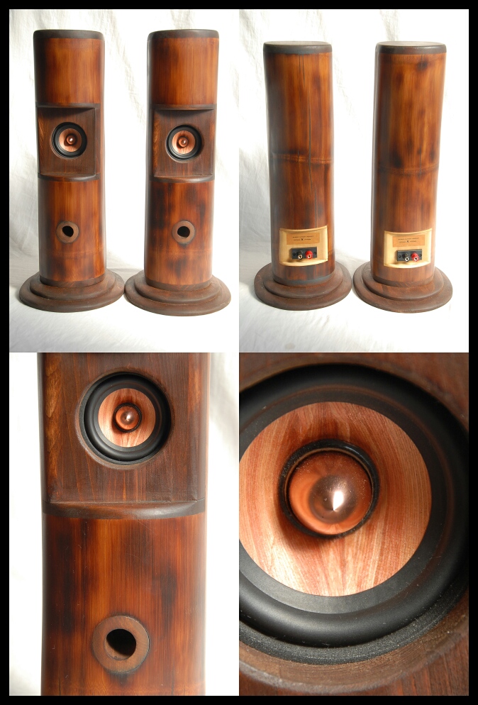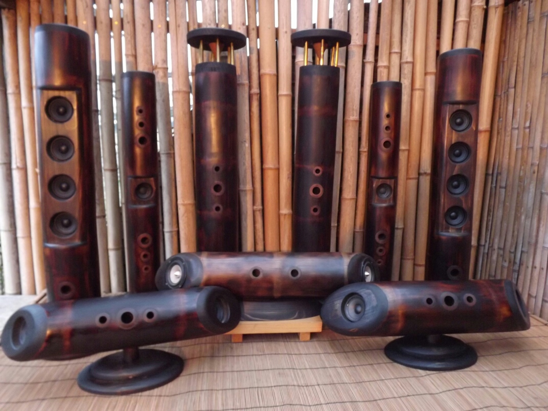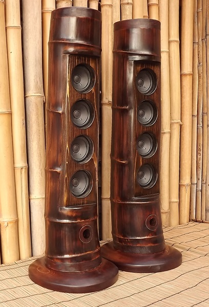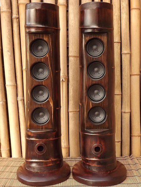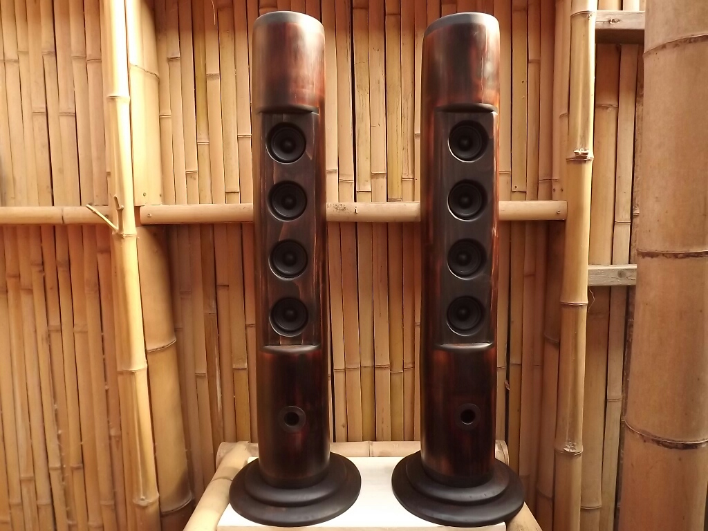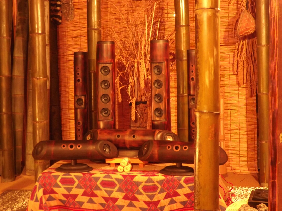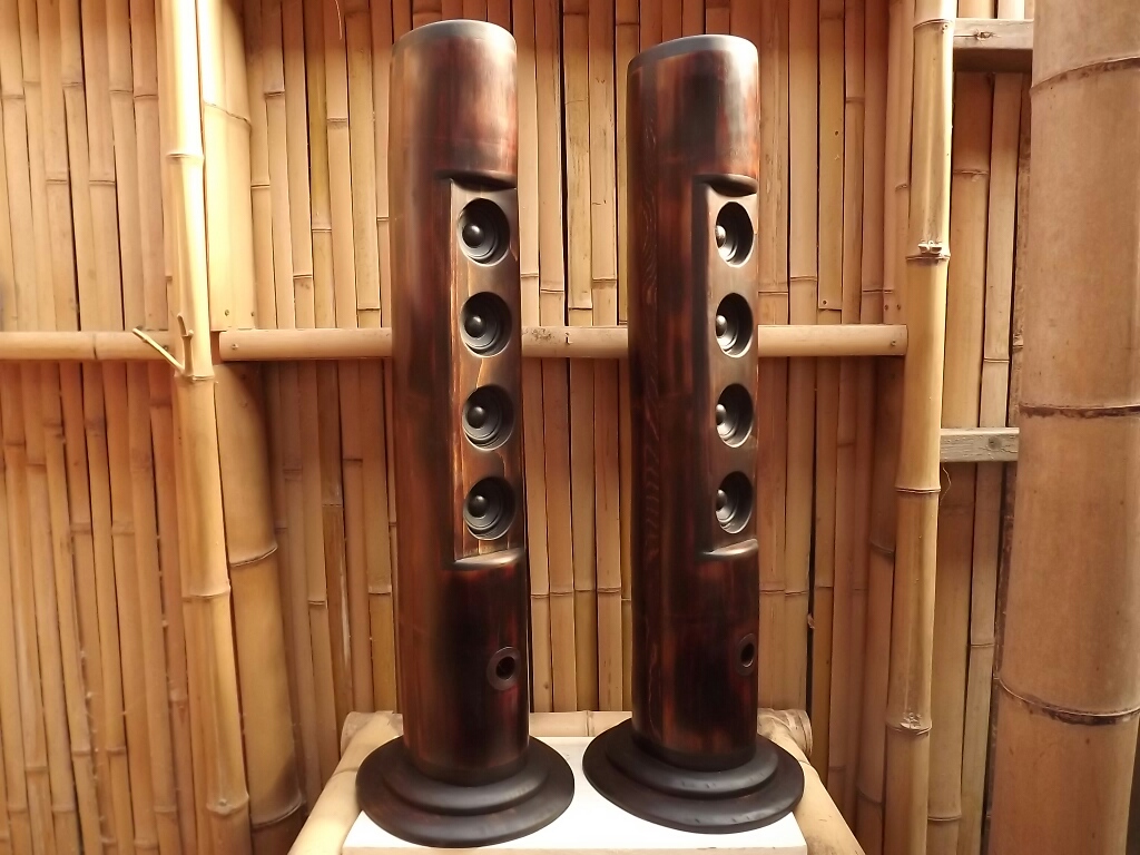 竹の根元をうまく使ったバンブースピーカーです。肉厚の竹から出る重低音はなかなかいいです。